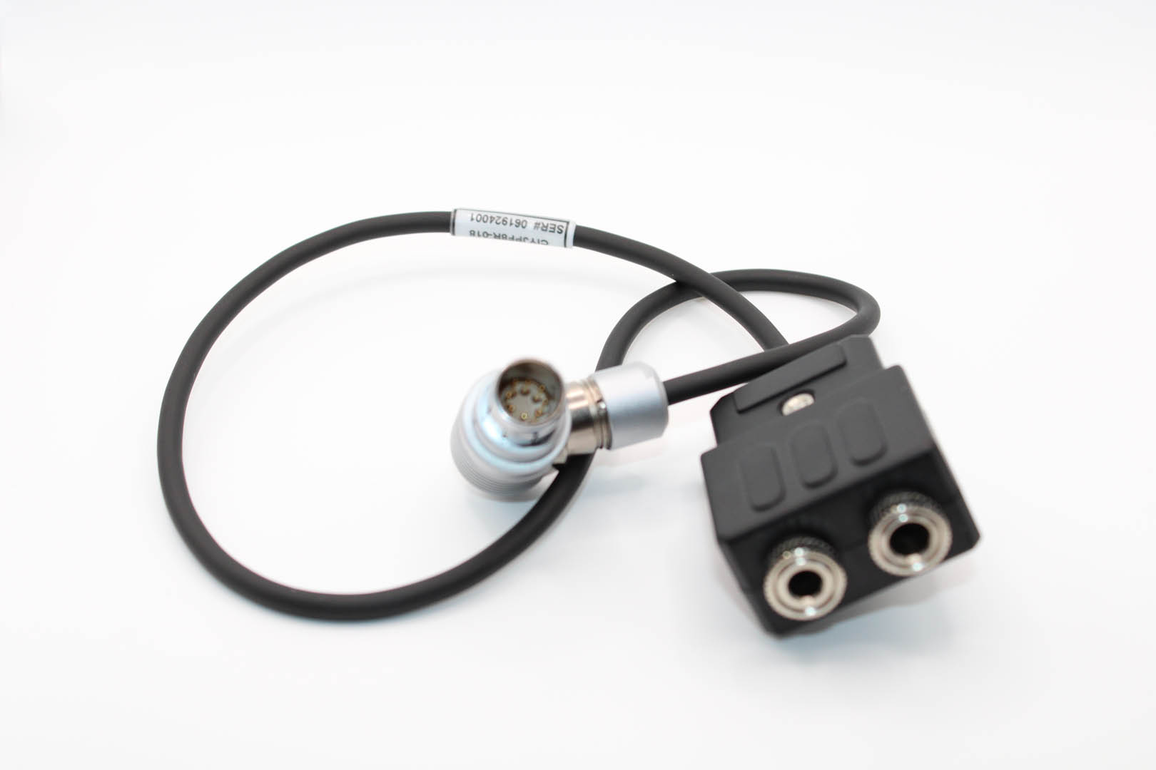 CIYJPF8-018 adapter cable, 18 inches straight, GA jacks(mates with GA type plugs) to 8 pin Fischer plug (p/n S 104 A066-130 +) & plug clamp for cable 5.7 mm to 6.7 mm (Fischer p/n E3 104.6/6.7)
